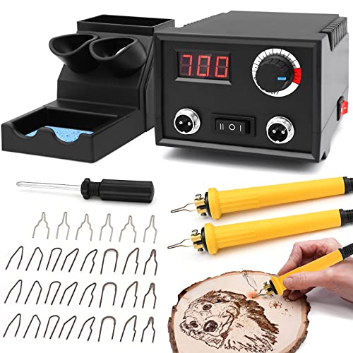Pyrografi-maskin, dubbel penna, träbrandsats, justerbar temperatur, 220 V digital träbrännare med 20 stycken pyrografitrådspetsar för trä, läder