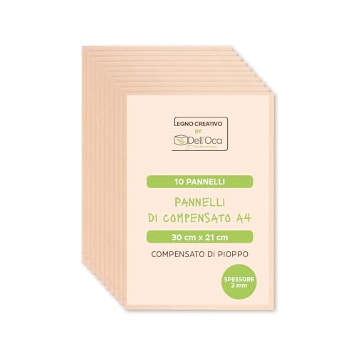 Carte Dozio - Kreativt trä från Dell'Goose 10 ark 3 mm tjock poppel plywood - B/BB-kvalitet - flerskikts träark för dekoration, pyrografi, gör-det-själv, modellbygge, målning