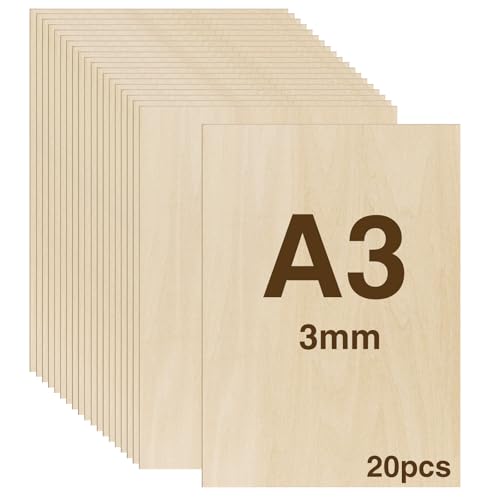 WISYOK 20 x A3 Plywood, Plywoodskivor av björk, Multiplexplattor, Basträplåt, Oavslutade Träskivor, Multiplexskivor, Björkskivor Perfekt för Pyrografi, Laserskärning, Målning - 420x300*3 mm