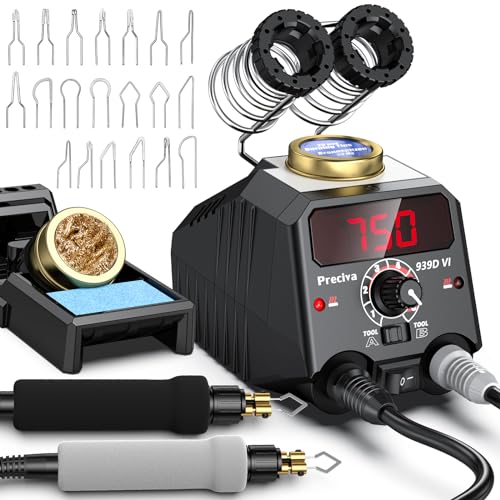Träpyrograf, Preciva 939D VI elektrisk svetsare, temperaturområde från 250 ℃ till 750 ℃, 20 typer av flerformade bitar, ergonomiskt handtag, lämpligt för pyrografi, svetsning, DIY
