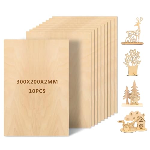 WISYOK 10 x A4 Plywood, Plywoodskivor av björk, Multiplexplattor, Basträplåt, Oavslutade Träskivor, Multiplexskivor, Björkskivor Perfekt för Pyrografi, Laserskärning, Målning - 300x210*2 mm