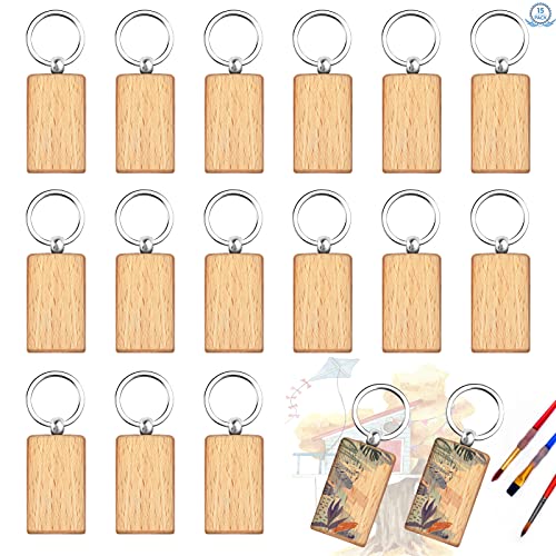 Baiyuanli 15 st tomma tränyckelringar – 5 x 3 cm rektangulära gör-det-själv trähantverk nyckelringar – naturliga tränyckeltaggar för gör-det-själv-hantverk pyrografi