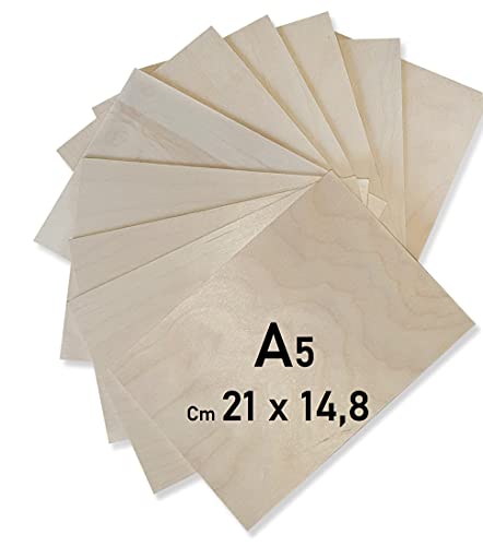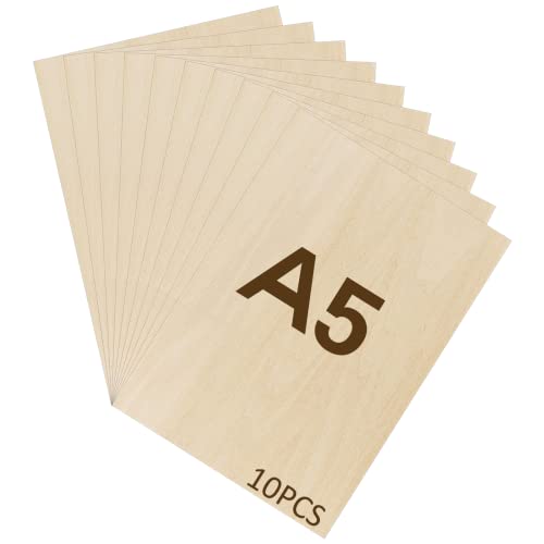 WISYOK 10 x A5 Plywood, Plywoodskivor av björk, Multiplexplattor, Basträplåt, Oavslutade Träskivor, Multiplexskivor, Björkskivor Perfekt för Pyrografi, Laserskärning, Målning - 210x150*2 mm