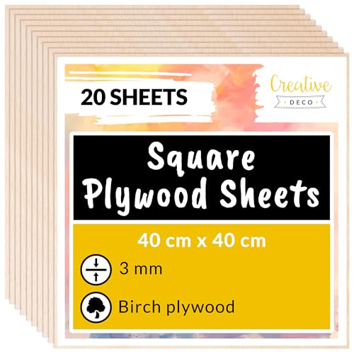 Creative Deco 20 x Fyrkant Plywoodskivor | 400 x 400 x 3 mm | Baltisk Björkträskikt | Perfekt för Pyrografi, Laserskärning, CNC-router, Modellering, Bandverk, Rullsåg