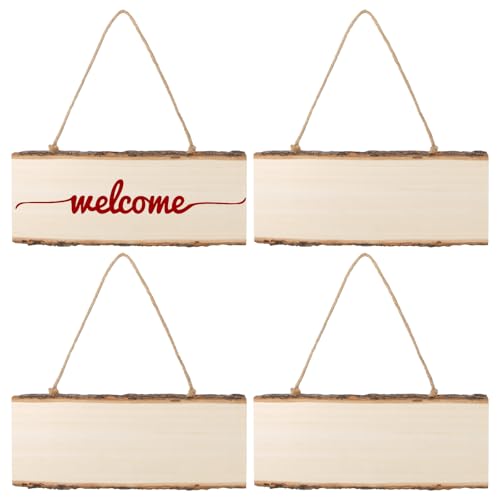 Sxutop 4 stycken rektangulära träpaneler att hänga upp, ofärdiga DIY-träplattor att gravera, omålade banderoller för väggdekoration med rep för pyrografi, målning, skrivning
