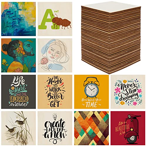 Belle Vous Obehandlade Blanka Träfyrkanter (50 Pack) – 10 x 10 cm – 2,5 mm Tjocka Plana Träfyrkanter Bitar för DIY Underlägg, Hantverk, Målning och Pyrografi Bränning