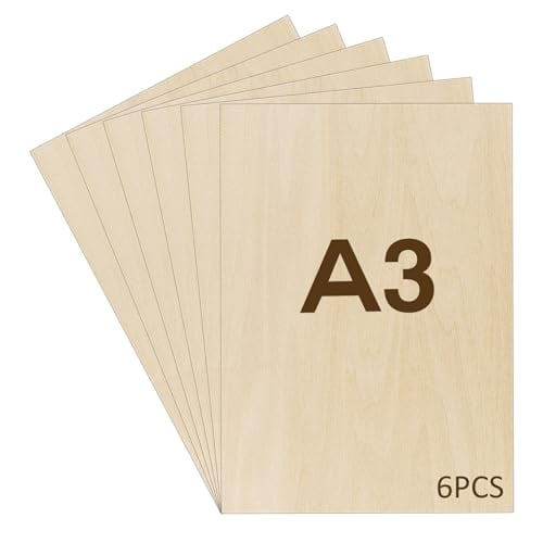 WISYOK 6 x A3 Plywood, Plywoodskivor av björk, Multiplexplattor, Basträplåt, Oavslutade Träskivor, Multiplexskivor, Björkskivor Perfekt för Pyrografi, Laserskärning, Målning - 420x300*2 mm