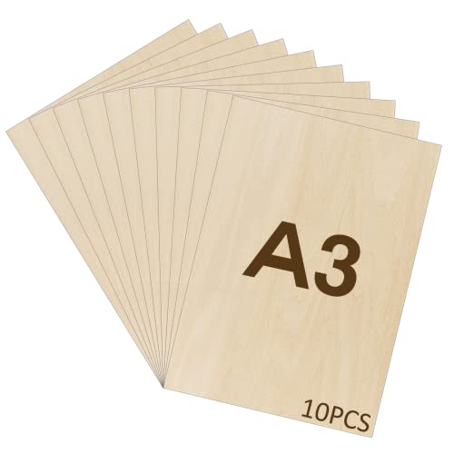 WISYOK 10 x A3 Plywood, Plywoodskivor av björk, Multiplexplattor, Basträplåt, Oavslutade Träskivor, Multiplexskivor, Björkskivor Perfekt för Pyrografi, Laserskärning, Målning - 420x300*3 mm