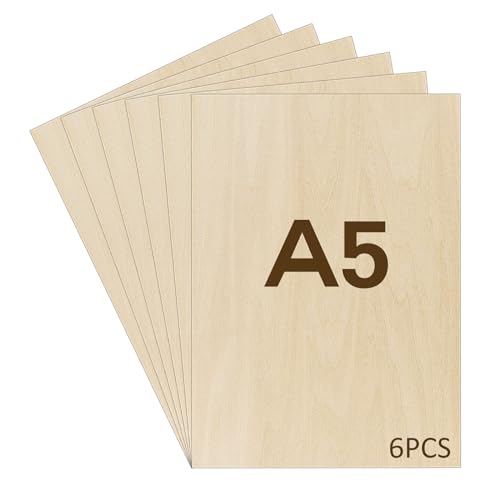 WISYOK 6 x A5 Plywood, Plywoodskivor av björk, Multiplexplattor, Basträplåt, Oavslutade Träskivor, Multiplexskivor, Björkskivor Perfekt för Pyrografi, Laserskärning, Målning - 210x150*2 mm