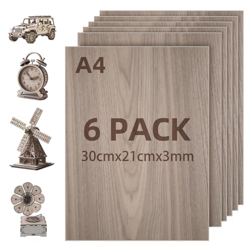 WISYOK 6 x A4 Plywood, Plywoodskivor av björk, Multiplexplattor, Basträplåt, Oavslutade Träskivor, Multiplexskivor, Björkskivor Perfekt för Pyrografi, Laserskärning, Målning - 300x210*2 mm