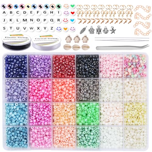 12047 stycken bokstavspärlor och glaspärlor, mini 2 mm fröpärlor med sax, elastiska snören, tillbehör för armband pyssel smyckestillverkning