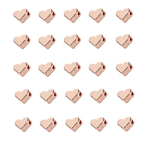 MiaLover 25 stycken hjärtpärlor metall 6 mm pärlor pyssel för armband halsband smyckestillverkning gör-det-själv kostym smycken hantverk hängen pärlor (roséguld)