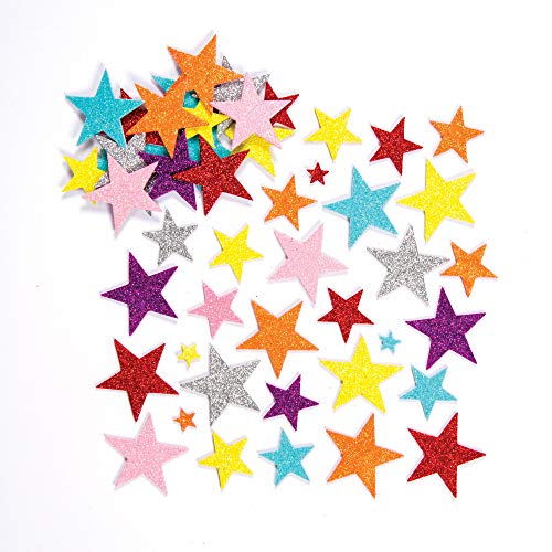 Baker Ross EF309 skumklistermärken – glittrande stjärnor – set med klistermärken för pyssel för barn och som dekoration – 150 stycken, blandade