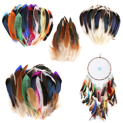 laeeyin 50 stycken fjädrar, färgglada fjädrar för pyssel, fjäderdekoration för gör-det-själv-örhängen, bröllop, drömfångare, huvudsmyckesfjädrar, skolhantverk