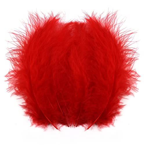 250 stycken 10–15 cm fluffiga röda kalkon-marabu-fjädrar för pyssel, färgade fjädrar, tillbehörsset