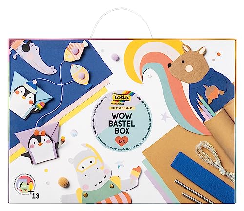 folia 924 – WOW hobbylåda HAPPINESS SAFARI, pysselväska 144 delar med papper, pysselkartong, klistermärken, tillbehör och instruktioner, medel