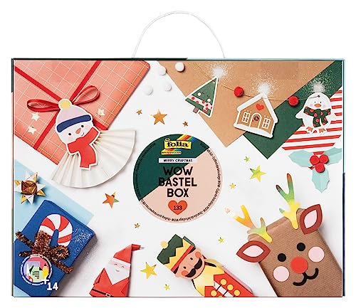 folia 923 – WOW Hantverkslåda MERRY Craftmas, pysselväska 133 delar med papper, pysselkartong, klistermärken, tillbehör och instruktioner, medel