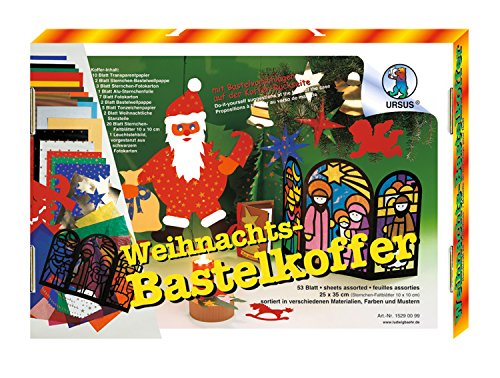 Ursus 15290099 – pysselväska jul, 25 x 35 cm, 53 ark sorterade i olika material, färger och mönster