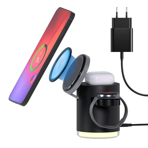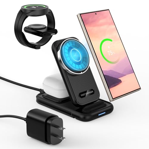 Trådlös Laddare för Samsung från MMOBIEL – 4 i 1 Qi2-Certifierad Magnetisk Trådlös Laddningsstation för Samsung Galaxy S25/S24/S23/S22-serien, Watch 7/6/5, Buds – Inkl. 25W Adapter – Svart