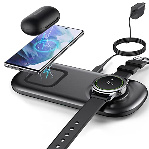Trådlös laddare, 2-i-1 Qi trådlös laddningsstation med QC3.0-adapter för Galaxy Watch 42 mm/46 mm, Sport/Active/Gear S3, Trådlös laddare för Galaxy Note 20/10/ S20