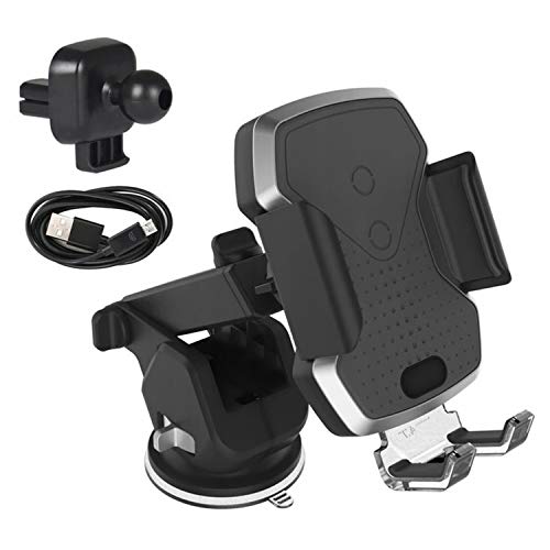 All Ride Telefonhållare för bil med trådlös laddare - telefonhållare för bilventilation - Qi billaddare - 52 mm till 106 mm telefoner - inkluderar mikro-USB-kabel - svart.