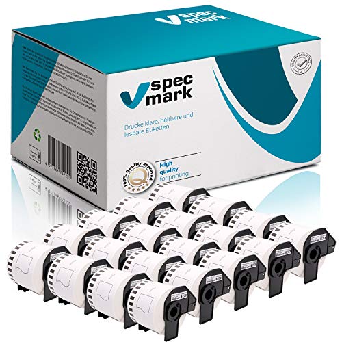 specmark 20 rullar oändliga etiketter för Brother DK-22205 62 mm x 30,48 m etiketter kompatibla med alla QL-etikettskrivare QL-570 QL-700 QL-800