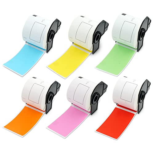 BETCKEY - 6 rullar DK-11202 fraktetiketter, kompatibla med Brother, 62 mm x 100 mm, 1 800 färgade etiketter, blandad färg för Brother QL etikettskrivare
