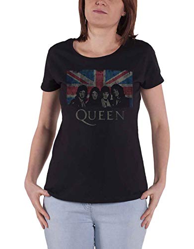 Queen T Shirt Union Jack Vintage Band Logo Official Womens Skinny Fit Black S