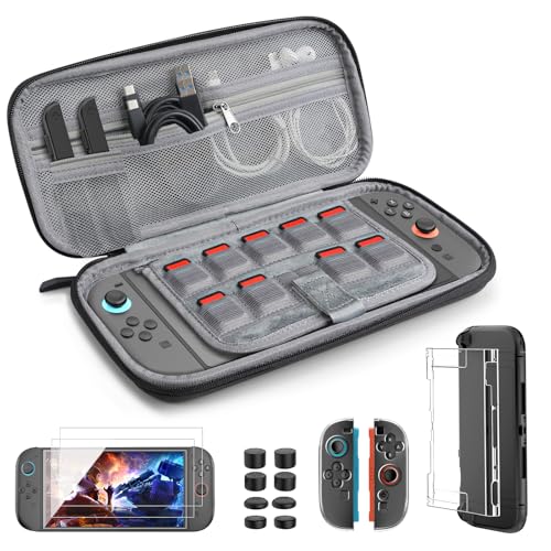TiMOVO Accessories Bundle Kit for Nintendo Switch 2, 14 in 1 Switch 2 Accessories with Carrying Case, PC Protective Cover, TPU JoyCon Case, 2 Pack Screen Protectors and 8 Pack Thumb Grip Caps, Black