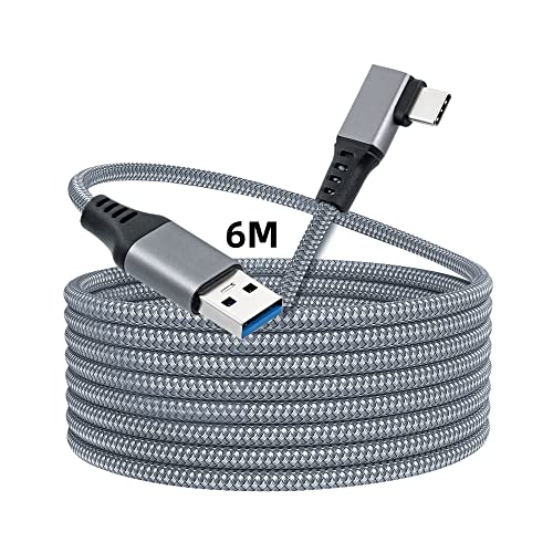 Mcbazel 6M Link Cable Cavo di Trasferimento Dati da Tipo-C a USB 3.0 Cavo di Ricarica Rapida Intrecciato ad Angolo Retto per Dispositivi Quest/Quest 2/Tipo-C