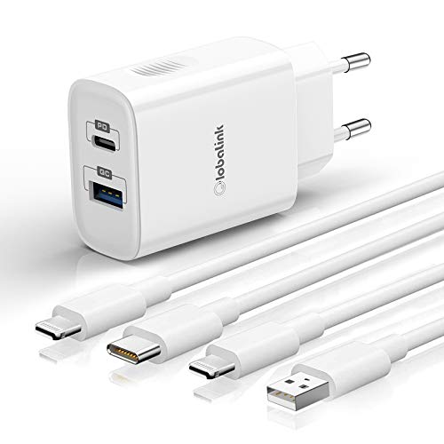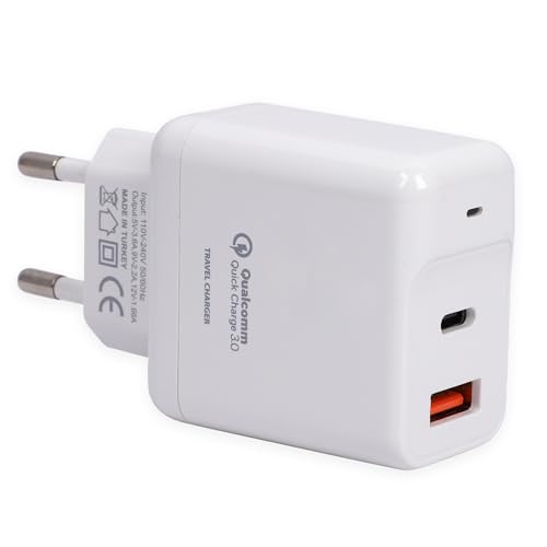 Laddare USB C multi-väggladdare för Apple Samsung Huawei Xiaomi | Italiensk garanti strömförsörjning för iPhone 12 11 Pro Max, Galaxy S21 S20 | Dual PD 18 W USB-C och Quick Charge 3.0 USB-A