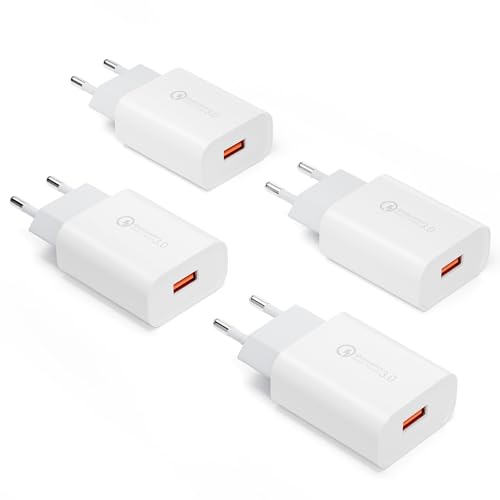 4 Pack USB-Laddare, Quick Charge 3.0 Snabbladdare Strömförsörjning 3A Laddningsadapter för Samsung Galaxy S23 A15 A54 A14 A53 S22 Ultra S21 FE S20 Note 20 10 9 8 Z Flip 5 4 3 S10 S9 S8 A13 A12