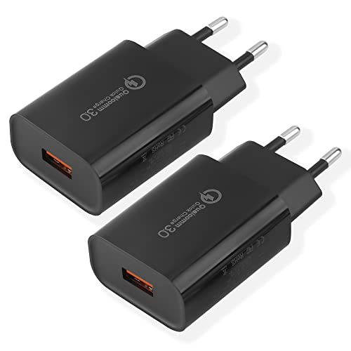 USB-laddare, 18 W Quick Charge 3.0 snabbladdare, USB-kontakt för Samsung Galaxy S5 S6 S7 S8 S9 S10 S20 S21 S22 A13 A34 A53, Phone, iPad, Huawei, ersättnings-originalladdare (2 Stycken)