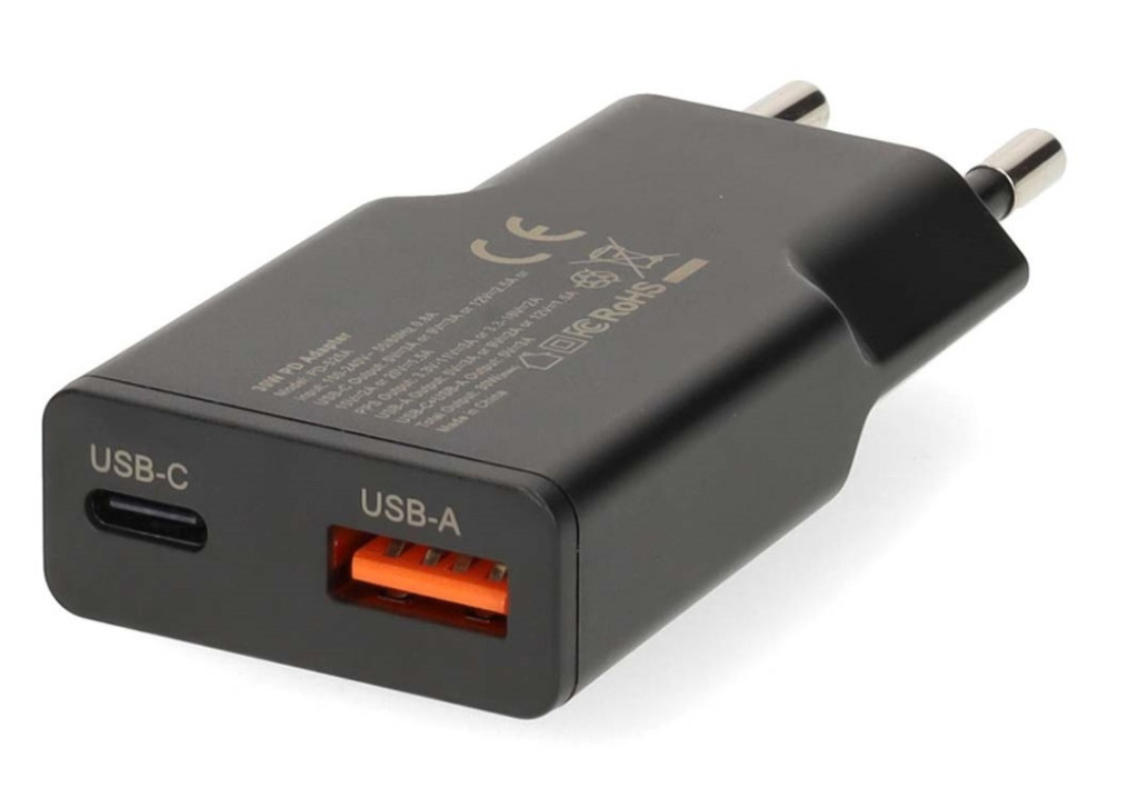 ICY BOX 2-portars laddare med 20W, USB-C & USB-A, Power Delivery 3.0, Quick Charge 3.0, skydd mot överhettning och överspänning, IB-PS1020-PD