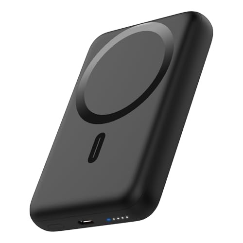 OKZU Power bank, magnetisk powerbank, 10 000 mAh, PD 20 W Quick Charge trådlös powerbank med USB-C ingångar och utgång för iPhone 15/14/13/12 (svart)