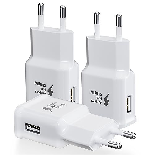 Adaptive Quick Charge USB-väggladdare, 3-pack Quick Charge Block Travel USB laddningsadapter, kompatibel med Samsung Galaxy S21 S20 S10 S9 S8 S7 Edge Plus, Note 8 9 10+, A03 A13 A32 A53 A54 iPhone.