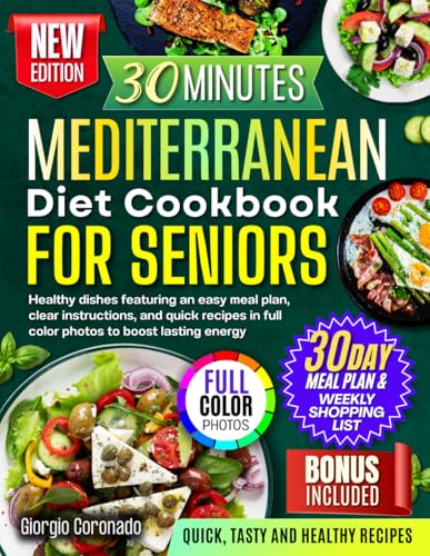 The 30-Minute Mediterranean Diet Cookbook for Seniors: Healthy Dishes Featuring an Easy Meal Plan, Clear Instructions, and Quick Recipes in Full Color Photos to Boost Lasting Energy