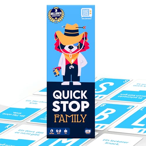 ATM Gaming QuickStop – bokstavsduellen – familjeutgåva – kortspel för barn och vuxna – snabbt och galen – 2 till 7 spelare – kortspel från 10 år – familjespel