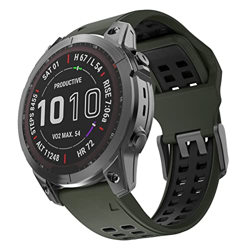 yzw6688 Tvåfärgad mjuk silikonarmband kompatibel med Epix Pro 51 mm 47 mm Mk2i/Mk1 Enduro MARQ Gen 2 QuickFit 22 26 mm bredd armband(Army Green Black,QuickFit 22mm)