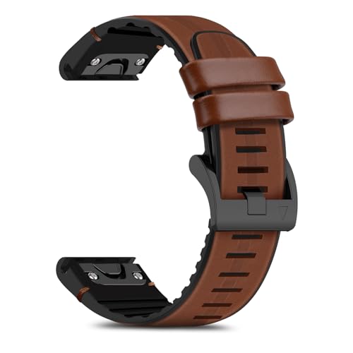 YOOSIDE QuickFit 26 mm klockarmband i läder för Fenix 6X/Fenix 5X/Fenix 7X/Enduro, mjukt äkta läder med silikon svettbeständigt armband för Garmin epix Pro 51 mm, Tactix Delta, QuickFit 26mm, Läder