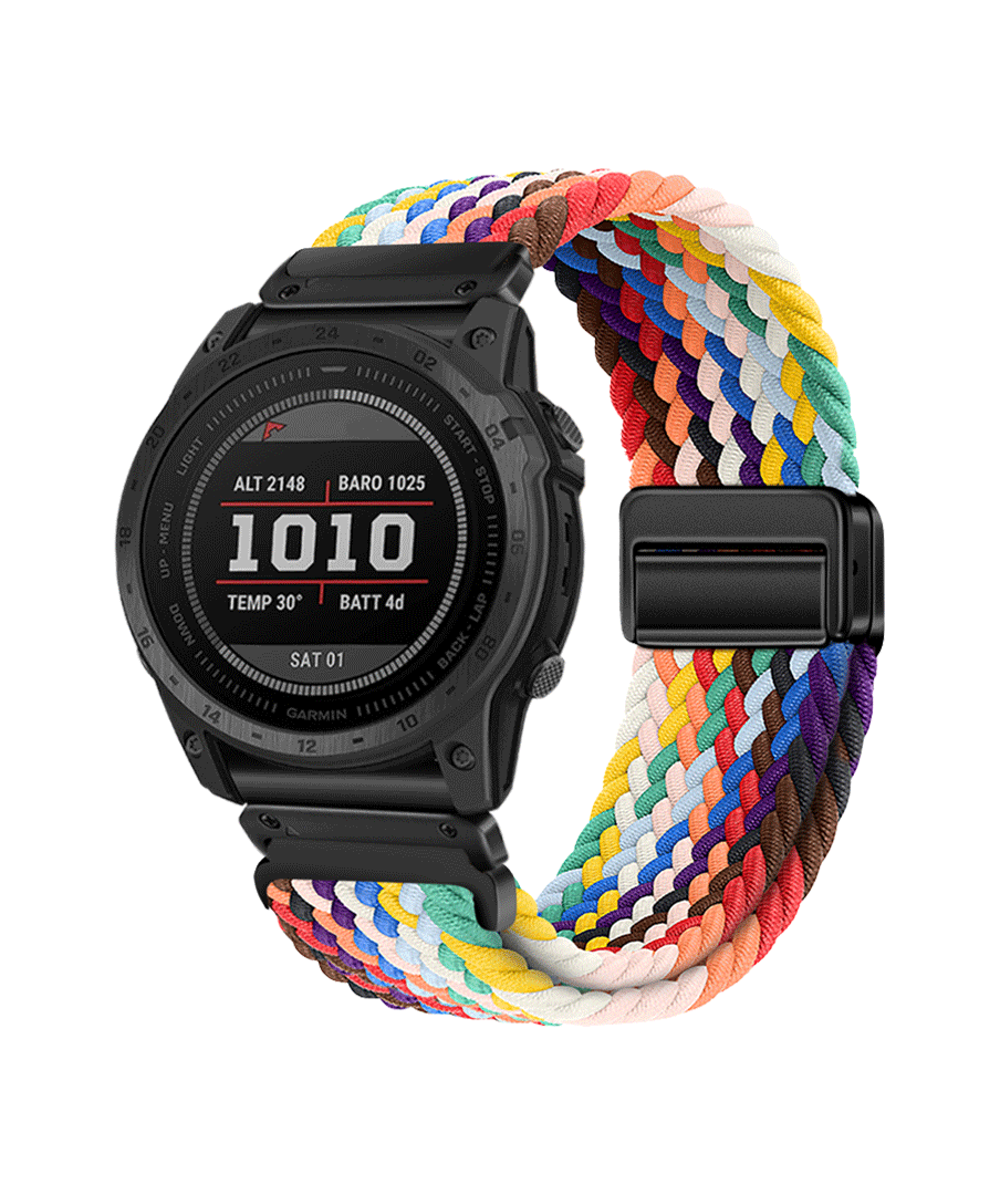 Essentials Flettet Nylonrem til Garmin QuickFit 26 mm.-Regnbue