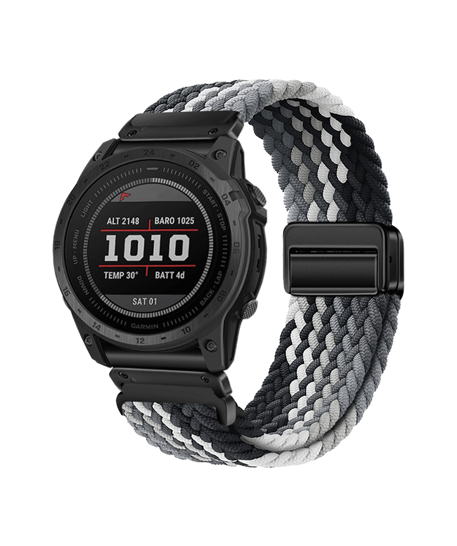 Essentials Flettet Nylonrem til Garmin QuickFit 26 mm.-Sort/Hvid/Grå