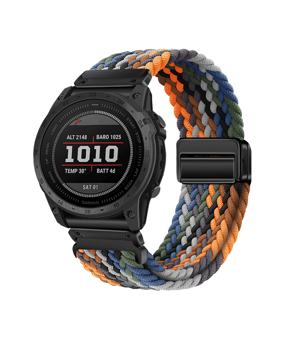 Essentials Flettet Nylonrem til Garmin QuickFit 26 mm.-Orange/Grøn/Blå