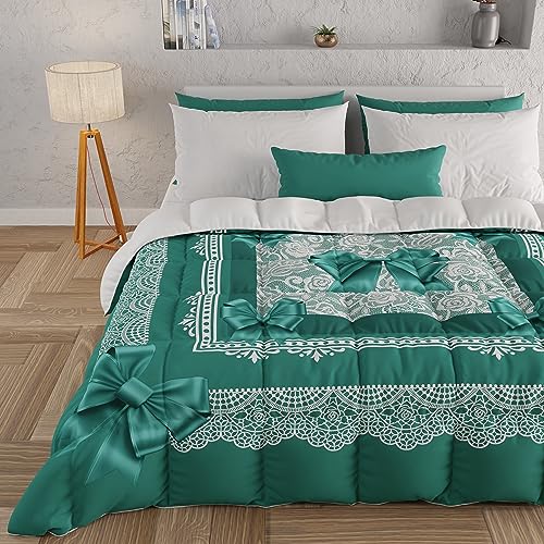 PETTI Artigiani Italiani - Quilt för en mellanstor kvadrat och halvfyrkantigt täcke, enfärgad dubbelsidig täcke och smaragdsmaragd digitalt tryck, tillverkad i Italien