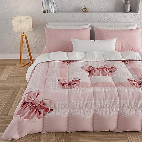 PETTI Artigiani Italiani - Quilt, vintertäcke, vintertäcke, enfärgad dubbelsidig dubbelsidig täcke och digitalt tryck rosett, 100% allergivänlig mikrofiber, tillverkad i Italien