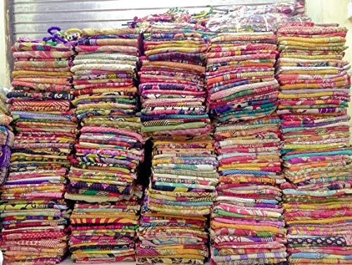 Sambhav Quilt Hub Grossist 10 st paket blandade vintage kantha täcke kantha överkast bomull täcke indiskt sängöverdrag gammalt sari lapptäcke filt dubbel storlek överkast ralli