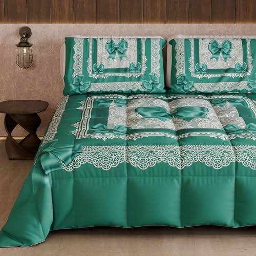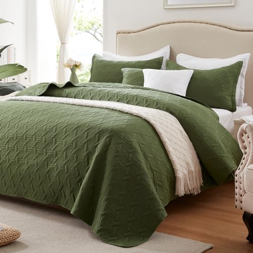 Leaonme California King Size Oversized Quilt set, lätt, olivgrön, 300 x 269 cm, mjukt, sommarsängkläder för alla årstider, 3 delar (inklusive 1 täcke, 2 örngott)