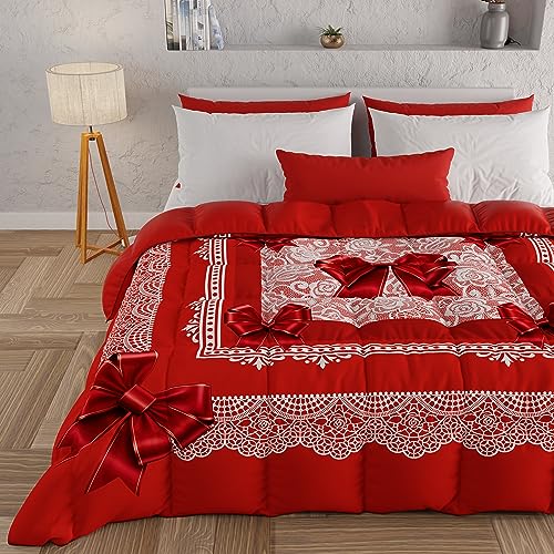 PETTI Artigiani Italiani - Quilt, vintertäcke, vintertäcke, fyrkantigt och halvsidigt dubbelsidigt täcke och digitalt tryck röd rosett, 100% allergivänlig mikrofiber, tillverkad i Italien