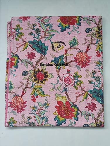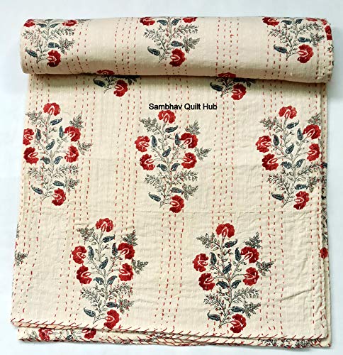 Sambhav Quilt Hub Indisk blommig kantha täcke block tryckt kantha filt bomull kung kantha överkast handgjord kantha överkast överkast överkast drottning överkast kantha filt