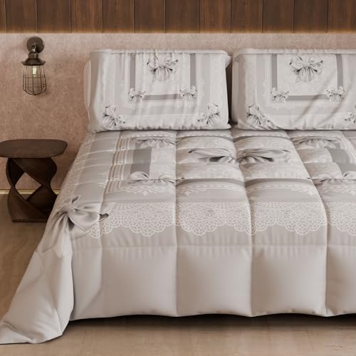 VIALMAN Bouti Sofia Quilt 30 lampor för enkelsäng 90 cm | Påslakan 90 | Täcke storlek 180x270 cm, färg Taupe